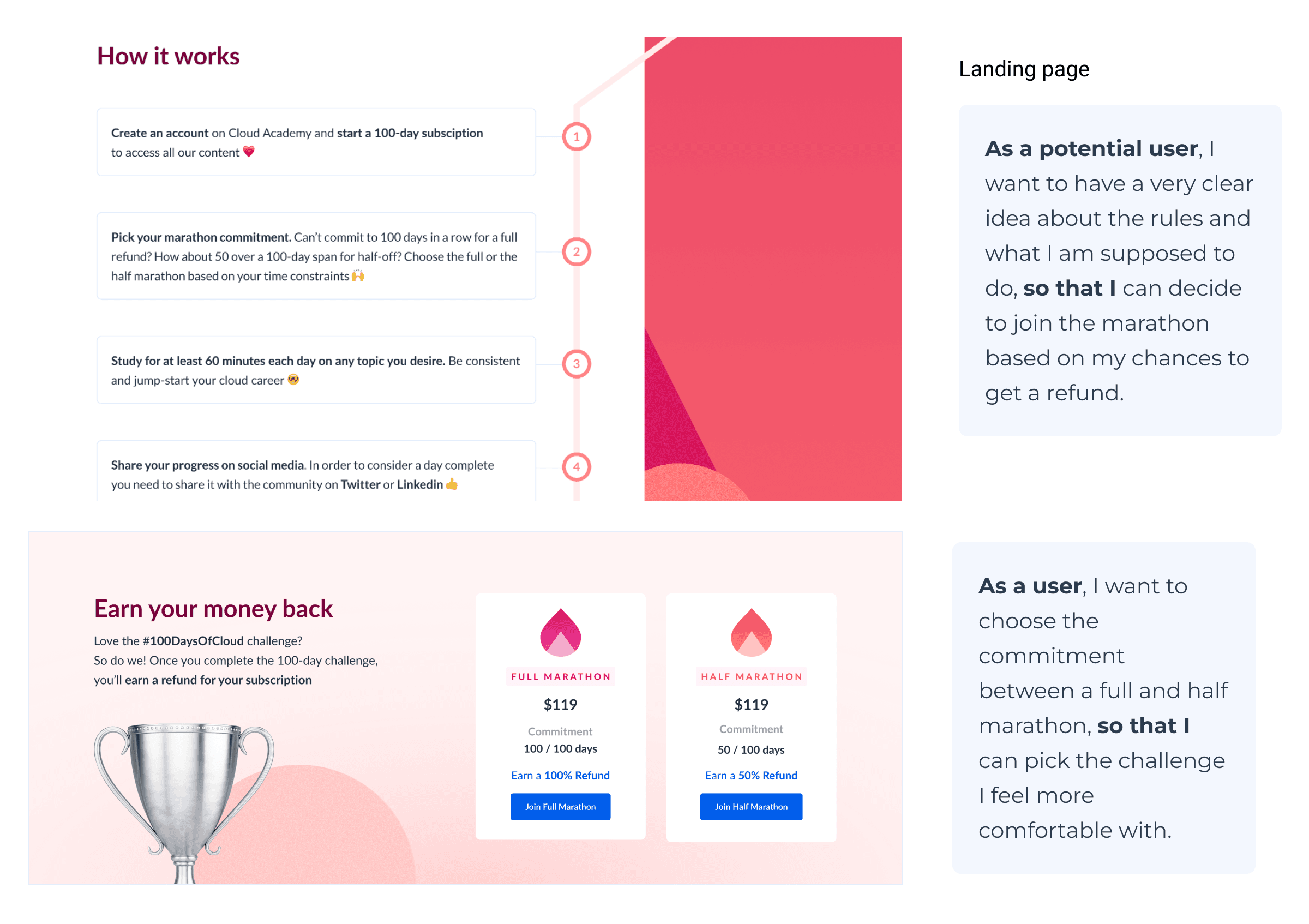 We launched Cloud Marathon, a 3-month challenge where users commit to studying 1 hour per day and posting their progress publicly. If they complete all 90 days, they get a full refund.