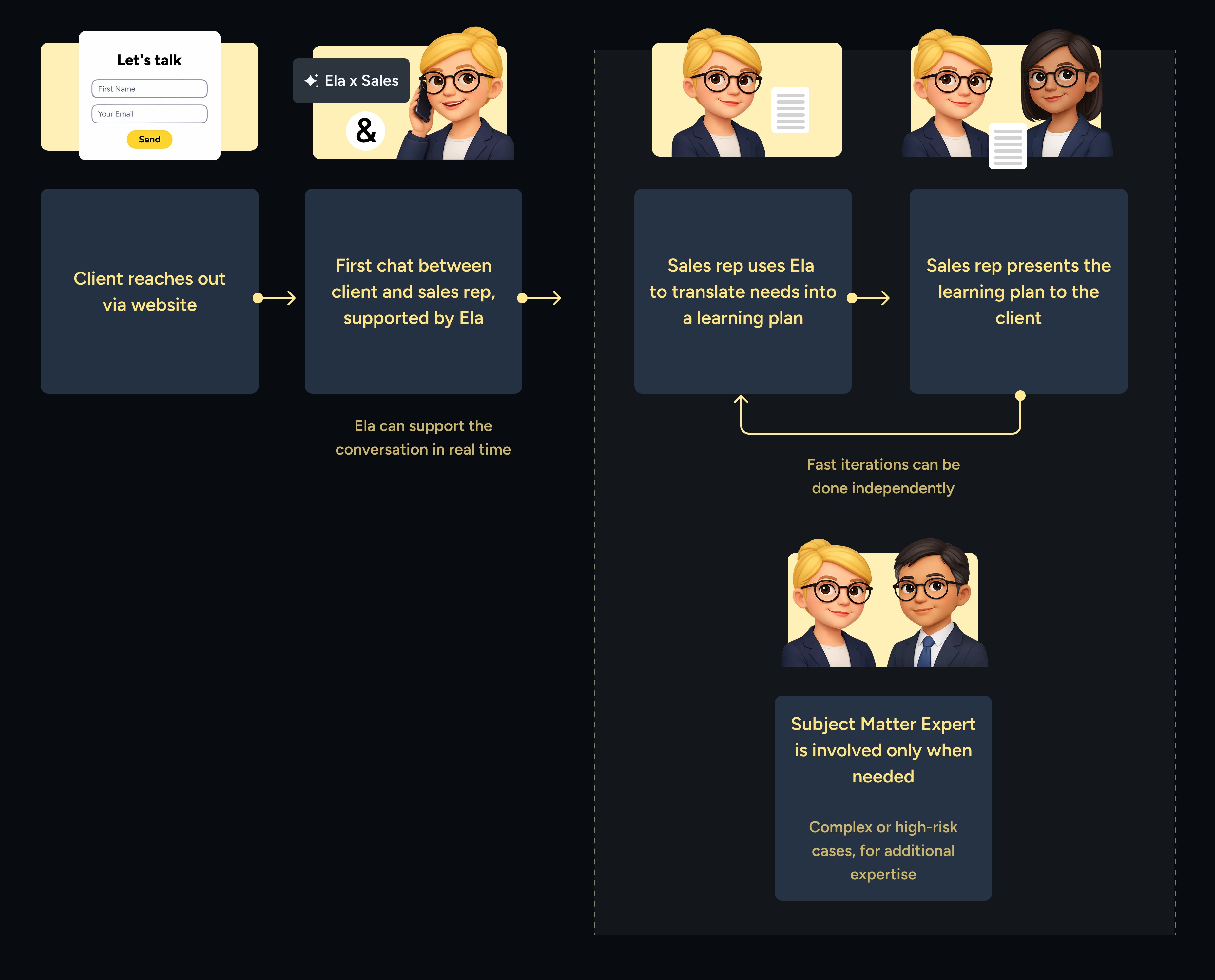 To build trust early, we asked reps to validate Ela’s suggestions with SMEs. Over time, a deeper trust gap emerged. The issue wasn’t trusting Ela, but trusting reps to iterate confidently and know when human expertise was needed. As a result, many defaulted to waiting for SME approval, which led to a drop in Ela adoption after launch.