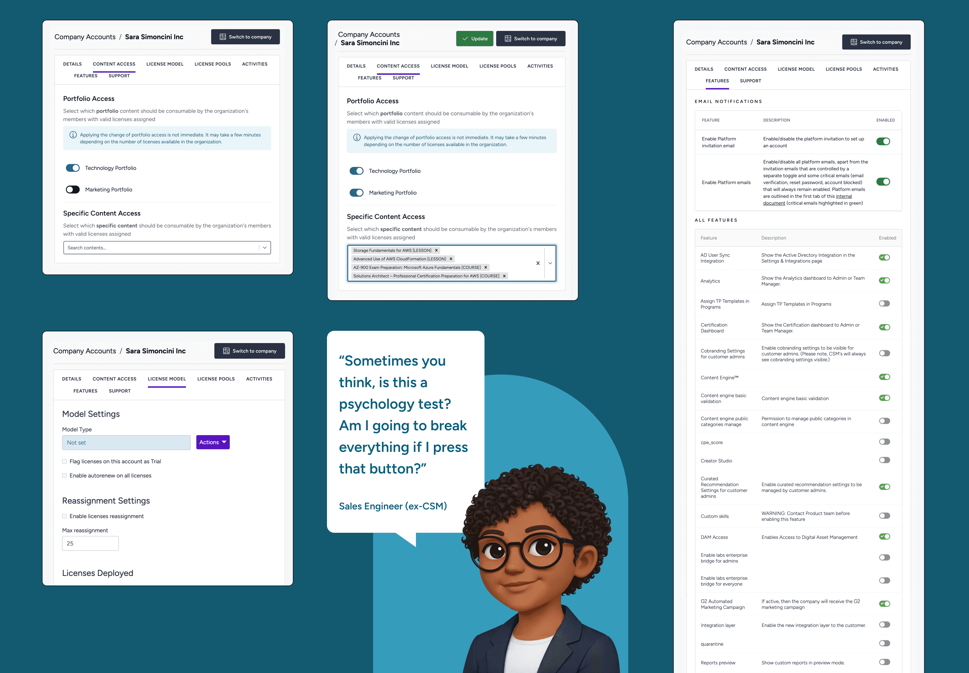 Sales and Success teams used the Enterprise Panel to configure accounts, assign licenses, and turn features on and off. But the interface had grown unclear and risky.